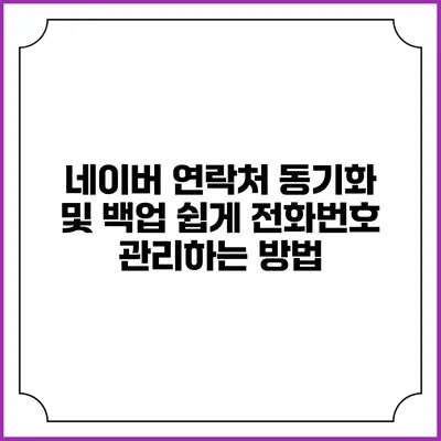 네이버 연락처 동기화 및 백업: 쉽게 전화번호 관리하는 방법