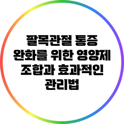 팔목관절 통증은 많은 사람들이 겪는 불편한 증상으로, 이를 개선하기 위해서는 올바른 영양제 섭취와 생활 습관 개선이 필수적이에요. 영양제를 적절하게 조합하고, 일상적인 관리법을 실천하는 것은 팔목관절 통증 완화에 큰 도움이 됩니다. 앞으로 이 내용을 바탕으로 여러분도 팔목 건강을 지키기를 바라요. 행동으로 옮겨 보세요! 여러분의 관절 건강이 곧 더 나은 일상으로 이어질 것입니다.