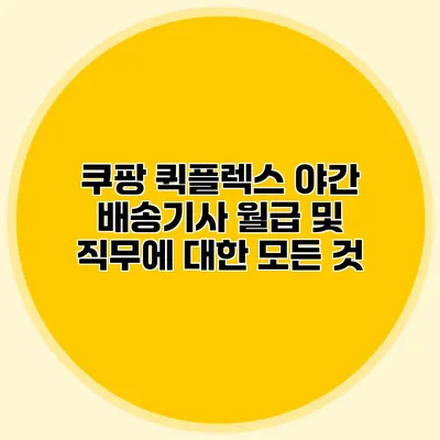 ✅ 쿠팡 퀵플렉스 야간 배송기사의 월급을 자세히 알아보세요.