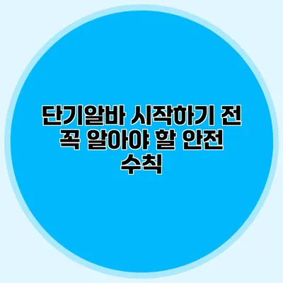단기알바를 시작하기 전, 여러분이 꼭 알아야 할 안전 수칙이 있습니다. 알바를 통해 다양한 경험을 쌓는 것도 좋지만, 안전이 최우선이 되어야 한다는 점을 잊지 마세요.