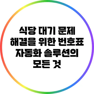 대를 걸쳐 식당 대기 문제를 해결하는 가장 효과적인 방법은 번호표 자동화 솔루션을 도입하는 것입니다. 이를 통해 대기 시간을 줄이고, 고객의 만족도를 높일 수 있습니다. 식당 운영에 있어 고객의 경험을 중심에 두는 것이 지금은 필수적입니다.